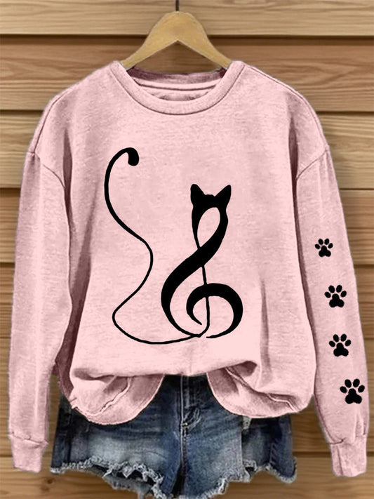 • Women's Music Note Inspired Cat Print Sweatshirt