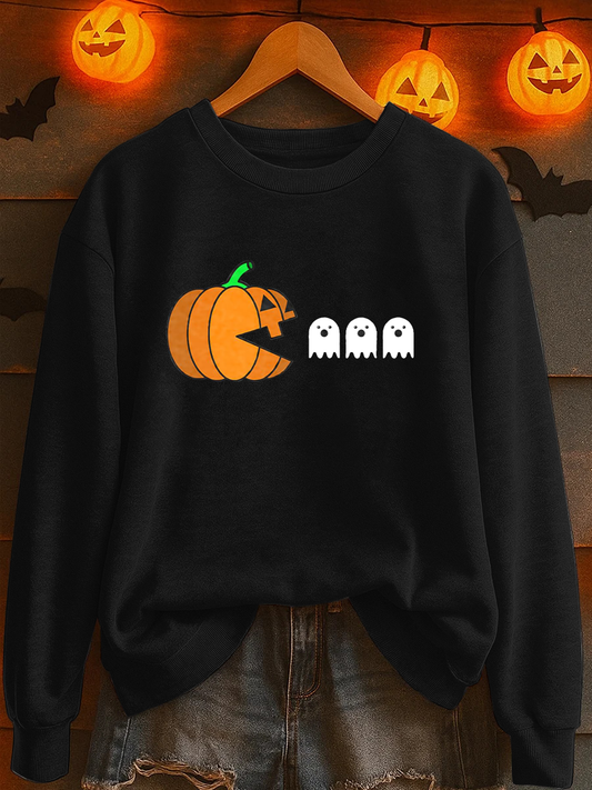 Women's Ghost Pumpkin Print Casual Sweatshirt