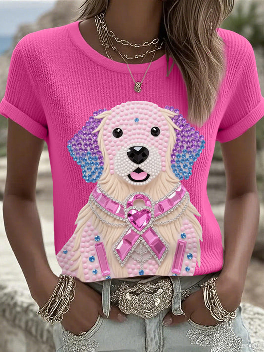Women's Cute Corgi Pattern Felt Art T-Shirt