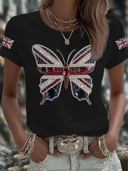 Women's UK Flag Butterfly Printed T-shirt