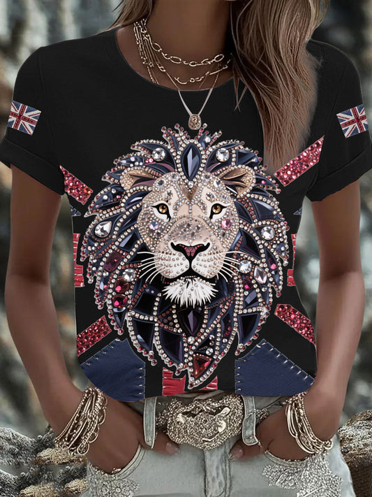 Women's UK Flag Lion Printed T-shirt