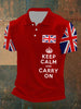 Men's Keep Calm and Carry On UK Flag Printed Casual POLO T-shirt