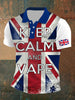 Men's Keep Calm Print Polo Neck Plunger Short Sleeve T-Shirt