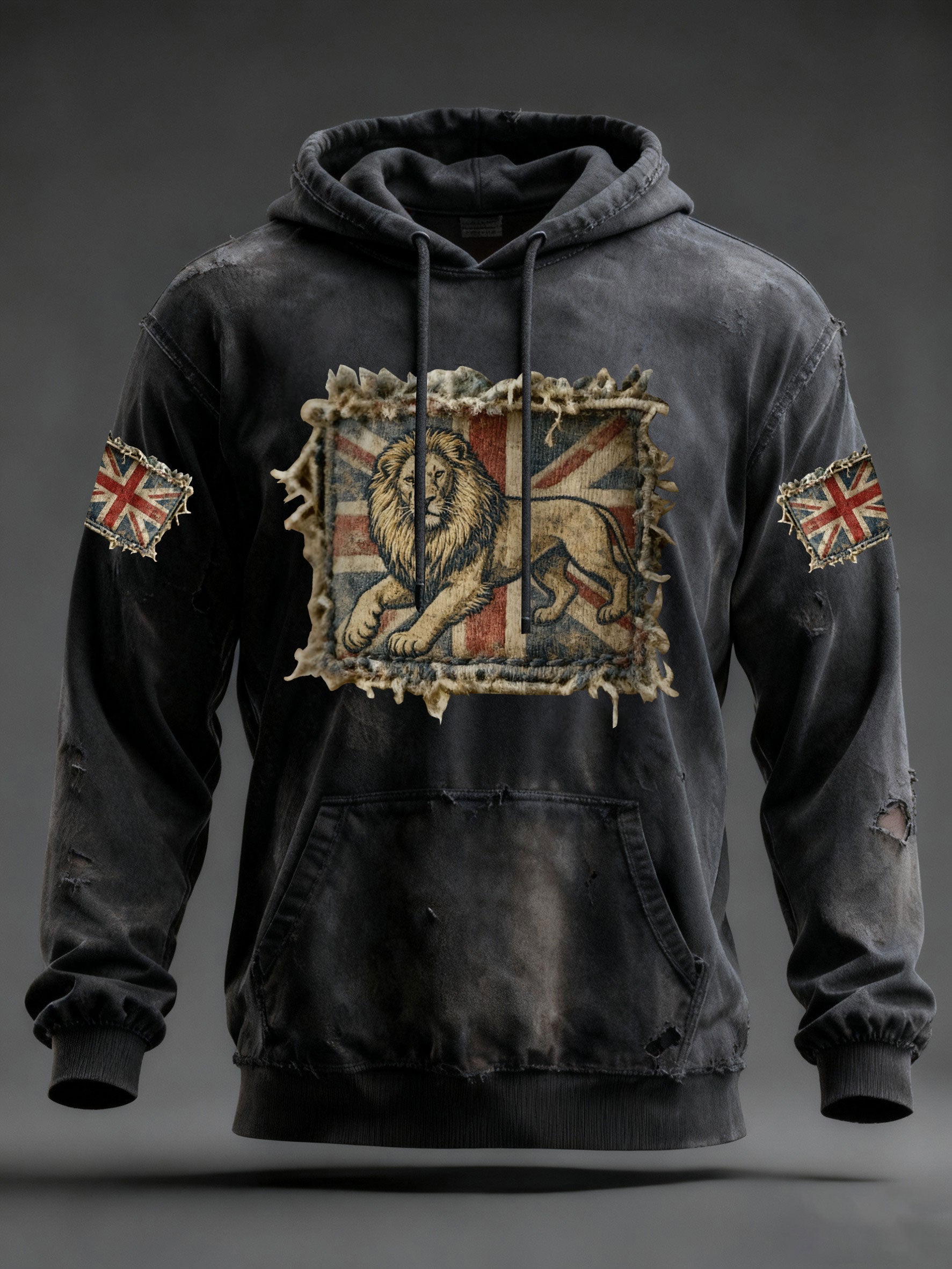 Men's Vintage England Flag Lion Printed Hoodie