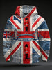 Men's Vintage England Flag Oversized Drop-Shoulder Hoodie with Pockets
