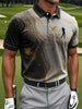 Men's Vintage Gradient Gold Textured Art Print Casual Business Polo Shirt