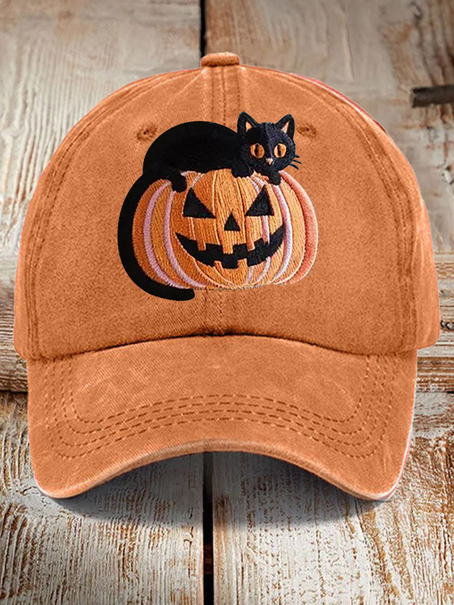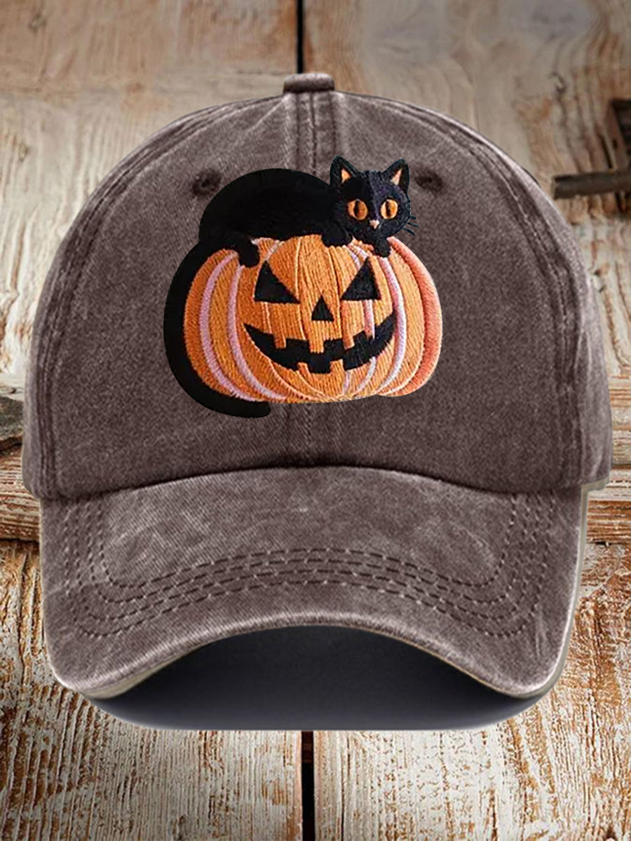 Unisex Fall Halloween Black Cat Pumpkin Print Hat