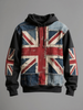 Unisex Union Jack and patchwork printed Drop-Shoulder Hoodie (No Pockets)