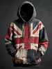 Unisex Union Jack and patchwork printed Oversized Drop-Shoulder Hoodie with Pockets