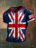Unisex Vintage British Flag Patchwork Abstract Print Casual Cotton Short Sleeve T-Shirt