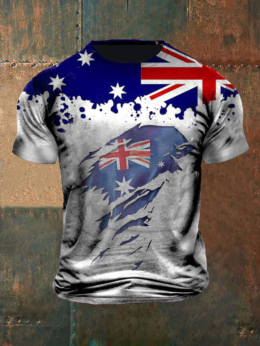 Unisex Vintage British Flag Patchwork Gradient Abstract Print Casual Cotton Short Sleeve T-Shirt