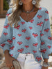 Women's British Flag Heart Printed V-Neck Casual Long Sleeve Shirt