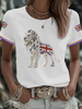 Women's British imitation diamond hot-drilling Printed short-sleeved T-shirt
