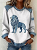 Women's British Style Denim Lion Patchwork Art Sweatshirt