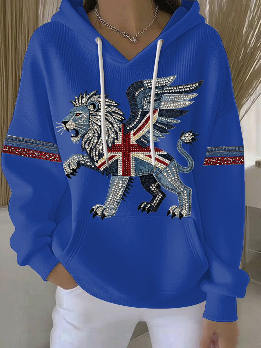 Women's British style imitation denim rhinestone hot-drill print casual hoodie