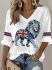 Women's British style imitation denim rhinestone hot-drill Printed Casual T-shirt