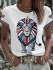 Women's British style imitation denim rhinestone hot-drill Printed Iron On Short Sleeve T-Shirt