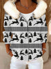 Women's Chic Black & White Plaid Reindeer Print Fur Collar Jacket