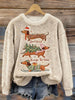 Women's Cute Christmas Dachshund Pattern Flannel Hoodie