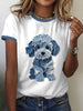 Women's Cute Dog Denim Patchwork Art T-shirt