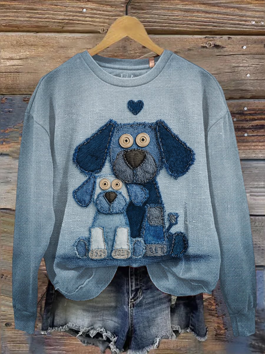 Women's Denim Dog Print Casual Sweatshirt