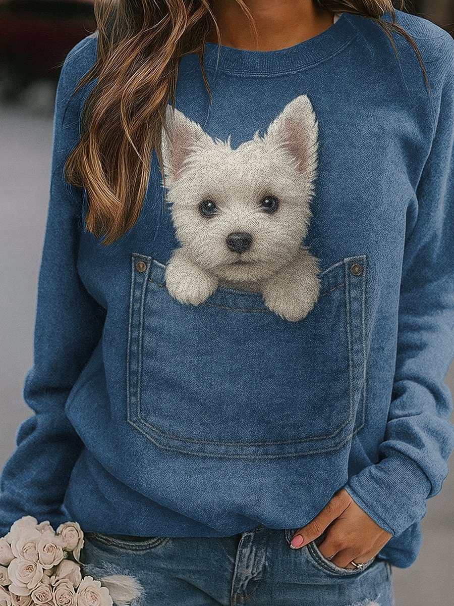 Women's Denim Dog Print Casual Sweatshirt
