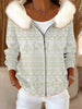 Women's Elegant Beige Reindeer & Tree Print Fur Collar Jacket