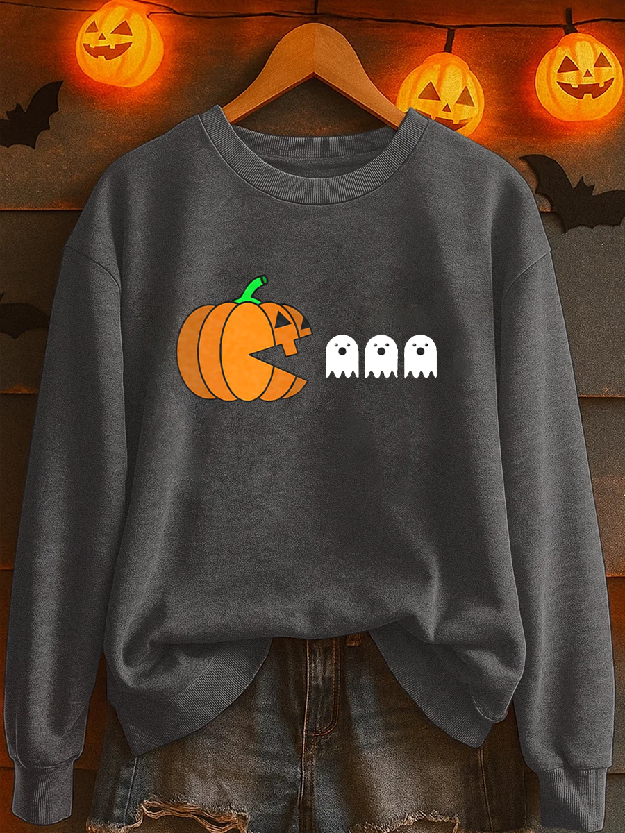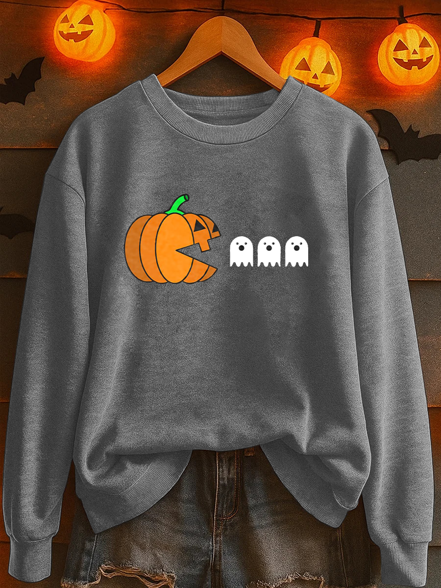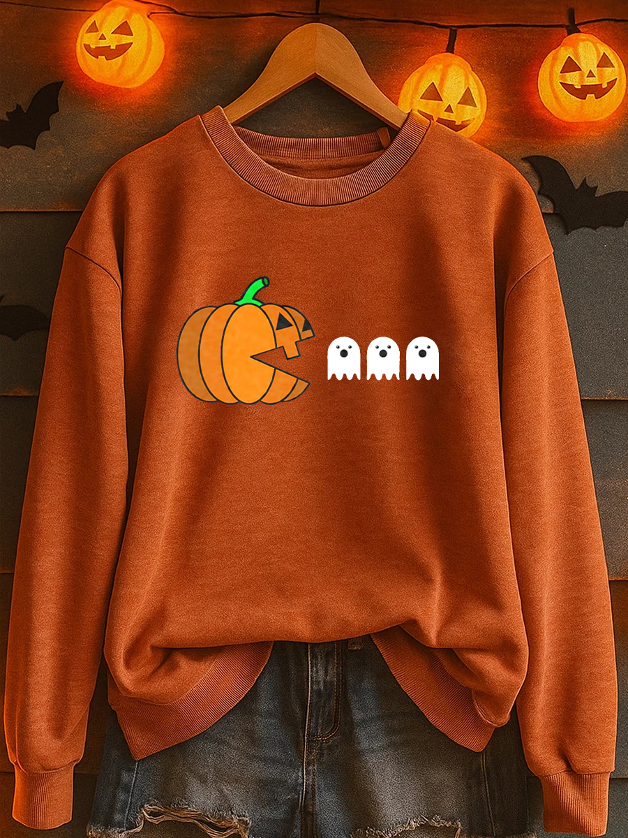 Women's Ghost Pumpkin Print Casual Sweatshirt