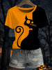 Women's Halloween Black Cat Short-sleeved T-shirt