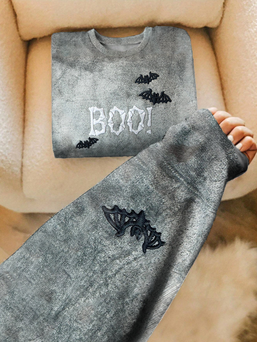 Women's Halloween Boo Bat Printed Sweatshirt