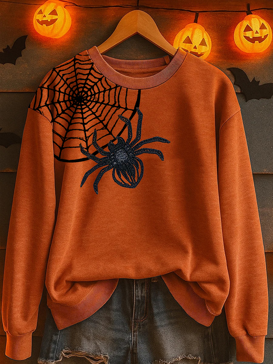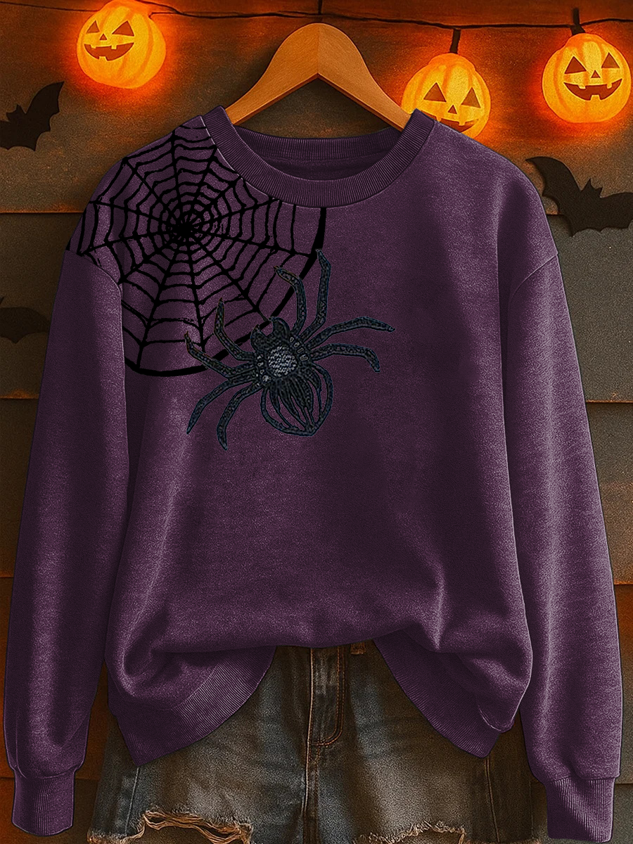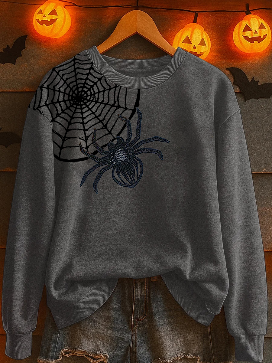Women's Halloween Spider Print Casual Sweatshirt