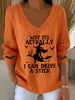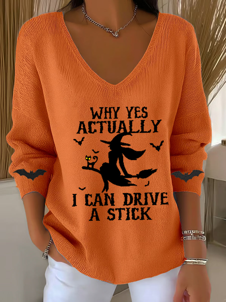 Women's Halloween Why Yes Actually I Can drive A Stick Casual V-Neck Ribbed Top