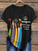 Women's Retro Music Band Imagine All The People Living Life In Peace Printed T-shirt