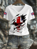 Women's UK Flag Skull Print Casual V-Neck Tee
