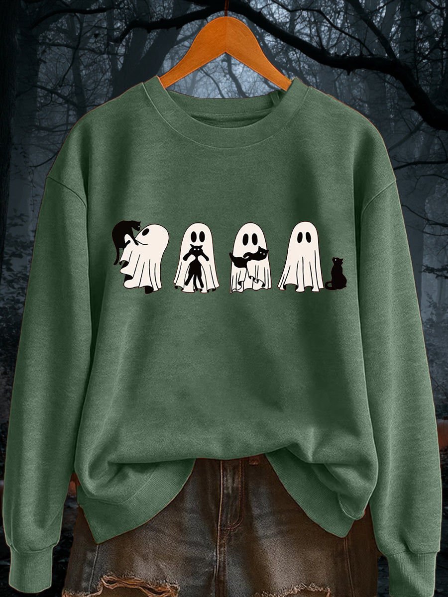 Women's Vintage Halloween Ghost Cat sweatshirt