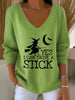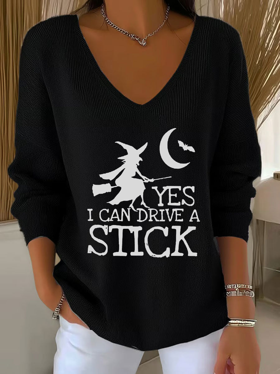 Women's witch "Yes I Can Drive A Stick" print knit top