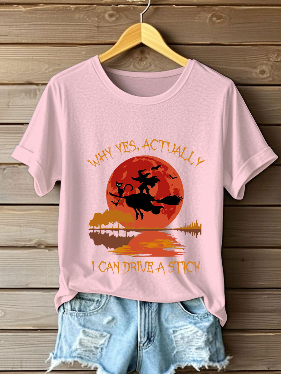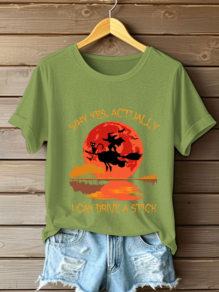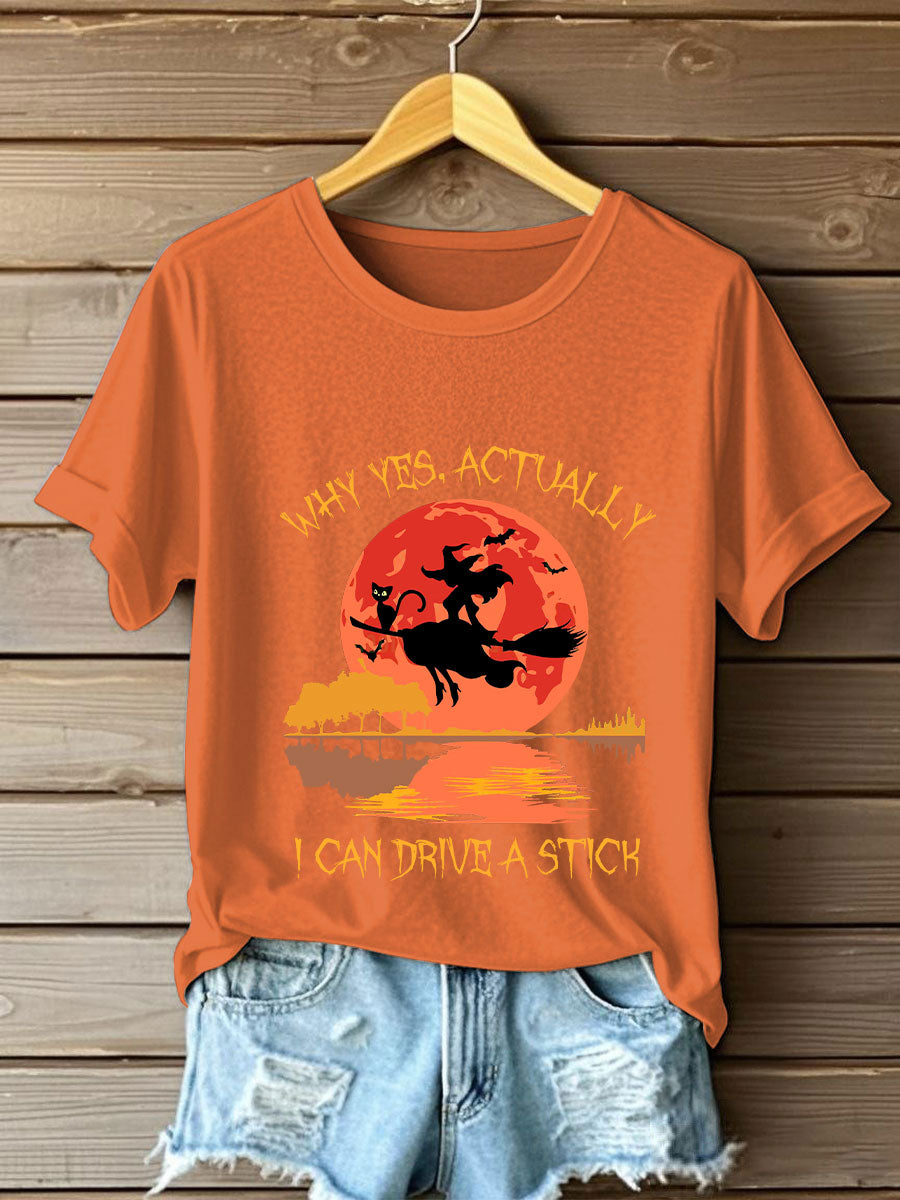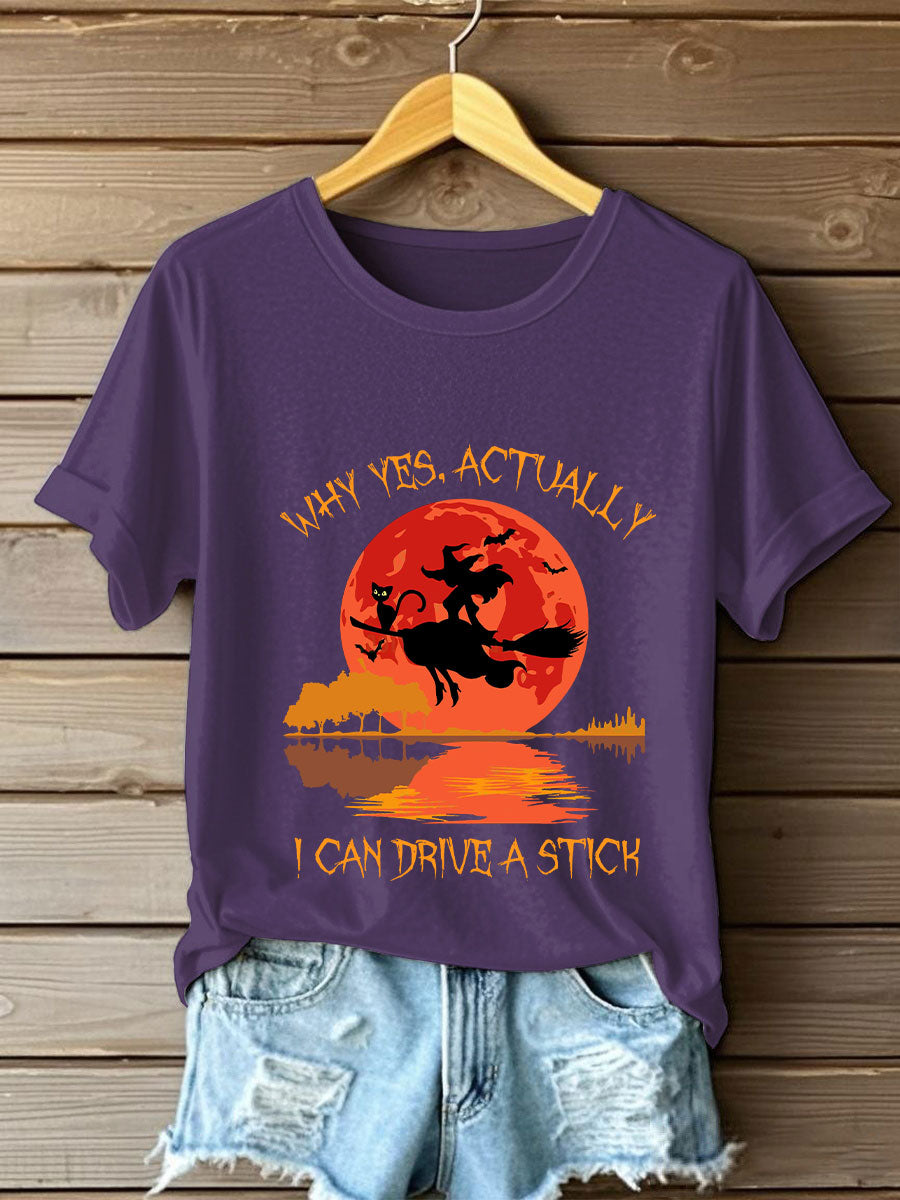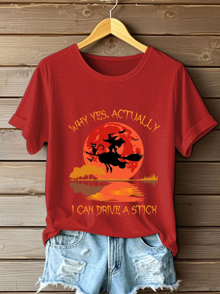 Women's Witch "Yes, I Can Drive A Stick" printed T-shirt